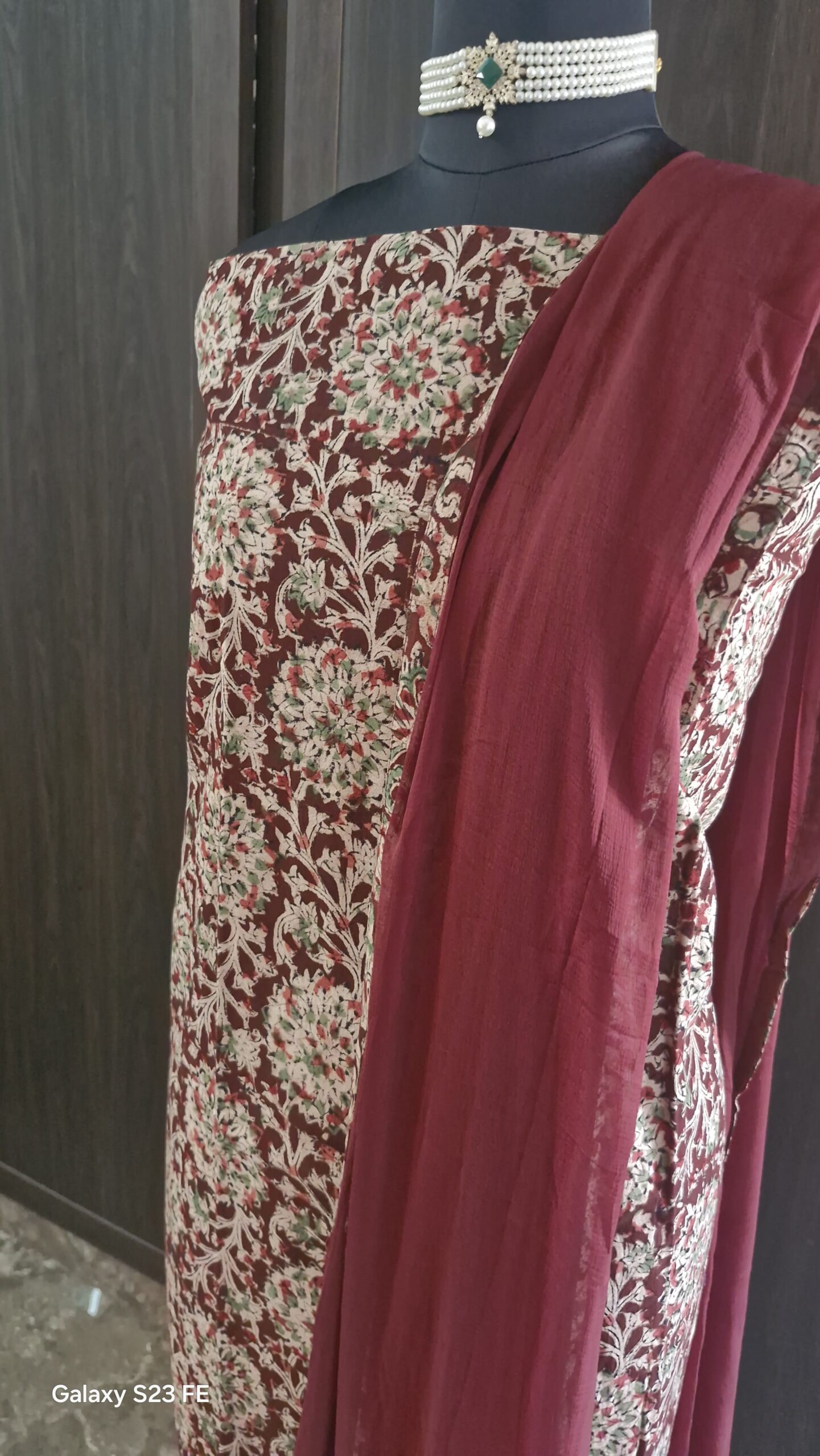 Elegant Kalamkari handblock printed cotton salwar material with soft breathable fabric. Perfect for daily wear and traditional styling.